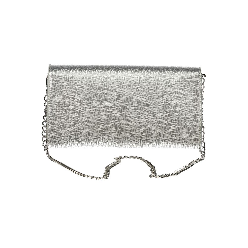 Meet your next fashion statement: the Valentino Bags Handbag in shimmering silver. Designed with stylish versatility in mind, it features a removable chain shoulder strap, adding a touch of glam to any outfit. The interior boasts two pockets for organization, while contrasting details add flair. Finished with a chic logo snap closure, this is a must-have for the modern fashionista.