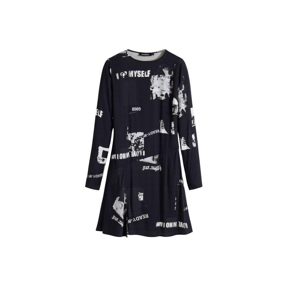 Discover the Desigual VEST_NEWSCORTO 25WWVW29 women’s short dress, an iconic piece that combines contemporary style with comfort. Made from soft viscose with a touch of elastane for added stretch and a perfect fit, this dress features an all-over graphic print with contrasting text and images, giving it an urban and modern vibe. The straight cut and long sleeves make it ideal for transitional seasons or to complete a casual-chic look. Perfect for those who love to stand out with an original and trendy outfit, this versatile dress is a must-have for every woman’s wardrobe.