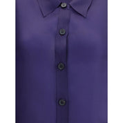 The Herschel Shirt by Khaite is a sleek and sophisticated piece designed for a modern, flowing look. Featuring a front button closure and classic collar, it has an asymmetrical hem and two side slits that enhance the design. The semi-transparent fabric lends lightness and a touch of sensuality, making this shirt a versatile and refined piece.